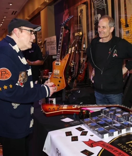 Rick Nielsen - Cheap Trick; I met Rick along with Paul Hamer at the Rockford Guitar show at the Rockford Hard Rock Casino June 1st, 2025 as I had a booth there and Paul had his booth right next to mine. Rick got a set of my PAF’s. I had met Rick the first time way back in 1974 at Northern Prairie Music. He was full on Rick even back then before Cheap Trick became world famous. Rick was also nice enough to sign my 4 digit Hamer Standard!